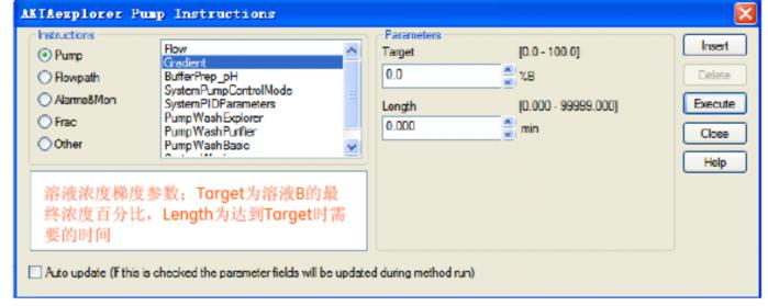 3、清洗及管道準備首先將A泵的進液管道(A1)放入緩沖液或平衡液中,將B泵的進液管道(B1)放入高鹽溶液中,在system control窗口點擊工具欄內(nèi)的manual,選擇 pump→pump wash explorer,選中A1,B1管道為ON, execute。泵清洗將自動結(jié)束。(Fig 4)