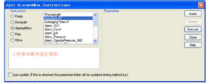 Fig 6、AKTA Explorer的限壓設(shè)定操作5、開始純化:1)在柱子平衡好之后(電導,pH的數(shù)值和變化趨勢穩(wěn)定)即開始上樣了。此時應(yīng)將紫外調(diào)零(Fig 7),選擇Alarm&mon→autozero,exectue。